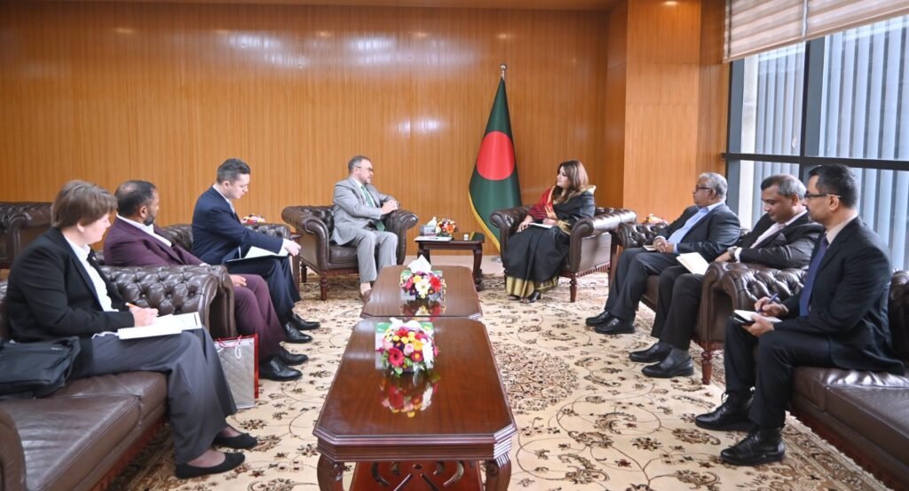 বাংলাদেশে নিযুক্ত রাশিয়ার রাষ্ট্রদূত আলেকজান্ডার গ্রিগোরিয়েভিচ খোজিন পররাষ্ট্র প্রতিমন্ত্রী শামা ওবায়েদ ইসলাম–এর সঙ্গে সৌজন্য সাক্ষাৎ করেছেন। রবিবার (১৫ মার্চ ২০২৬) পররাষ্ট্র মন্ত্রণালয়ে অনুষ্ঠিত এ বৈঠকে দুই দেশের বিদ্যমান বন্ধুত্বপূর্ণ সম্পর্ক ও ভবিষ্যৎ সহযোগিতা নিয়ে আলোচনা হয়।