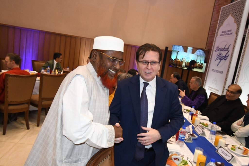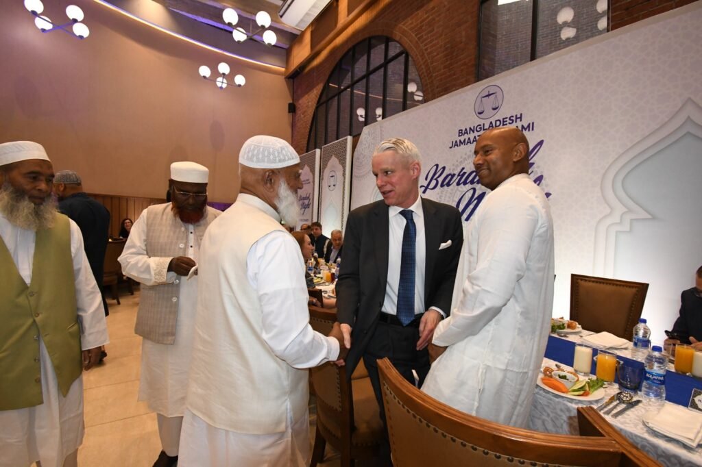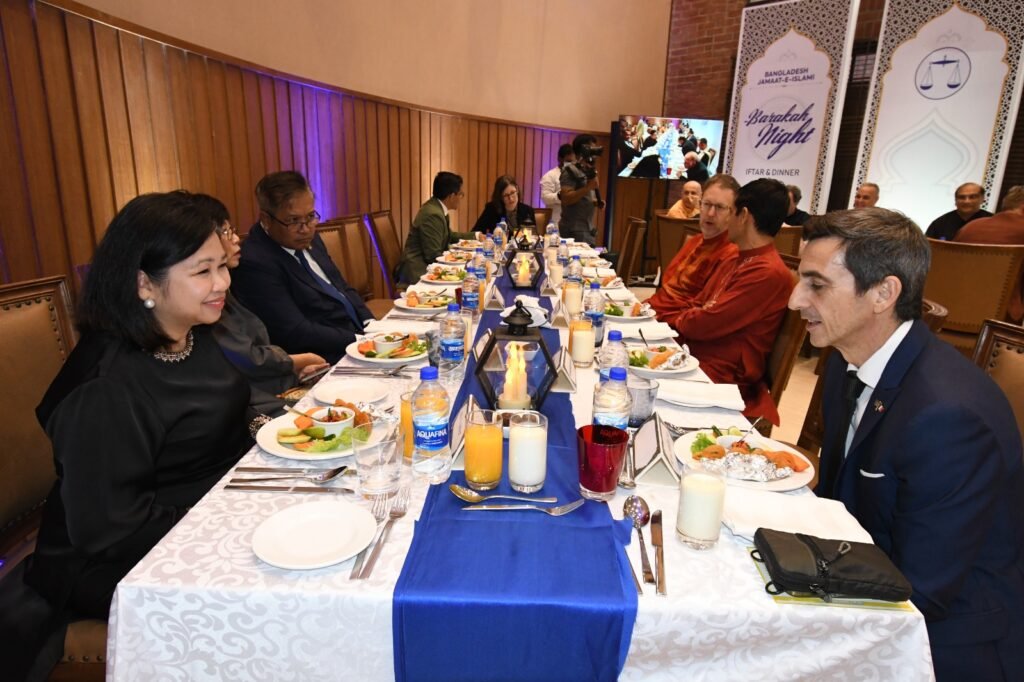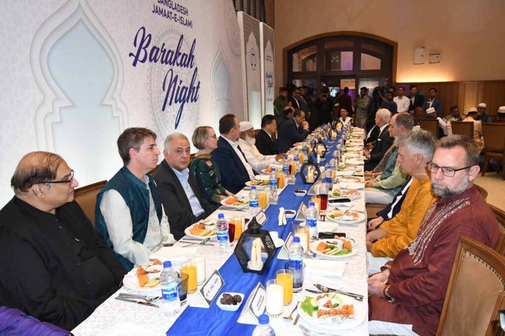 কূটনীতিকদের সম্মানে বাংলাদেশ জামায়াতে ইসলামীর উদ্যোগে রাজধানীতে এক ইফতার মাহফিল অনুষ্ঠিত হয়েছে। শনিবার (৭ মার্চ, ২০২৬) জাতীয় সংসদ ভবনের এলডি হলে আয়োজিত এই ইফতার মাহফিলে সভাপতিত্ব করেন বাংলাদেশ জামায়াতে ইসলামীর আমীর ও জাতীয় সংসদের বিরোধীদলীয় নেতা ডা. শফিকুর রহমান এমপি।